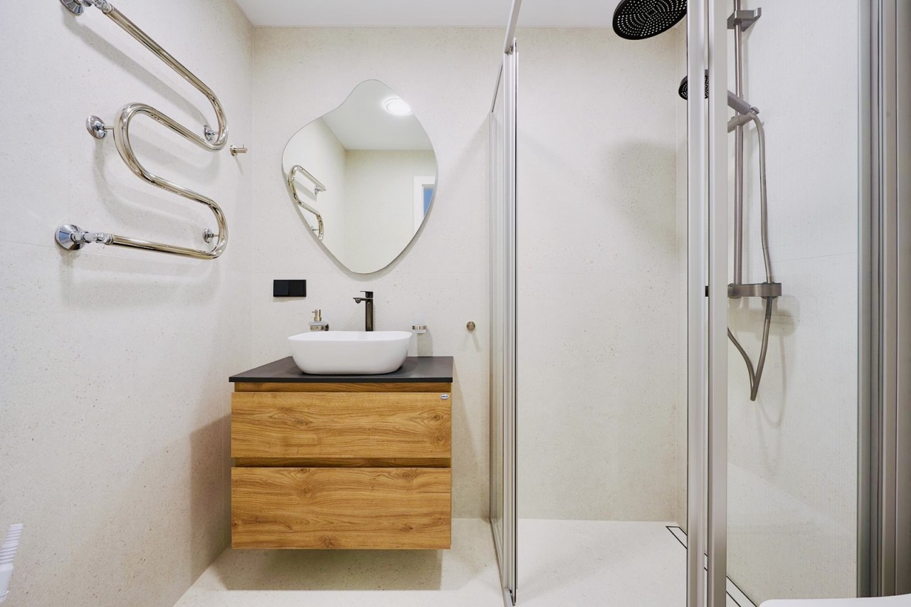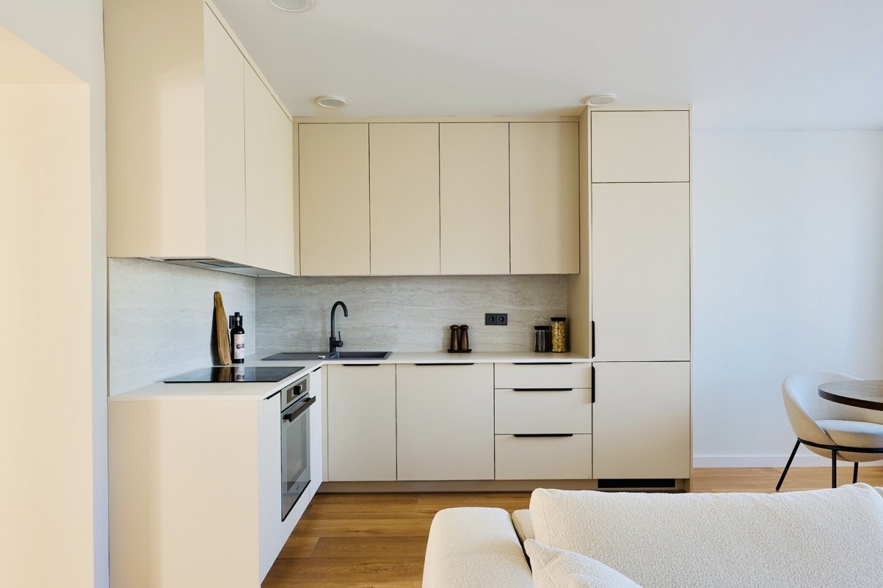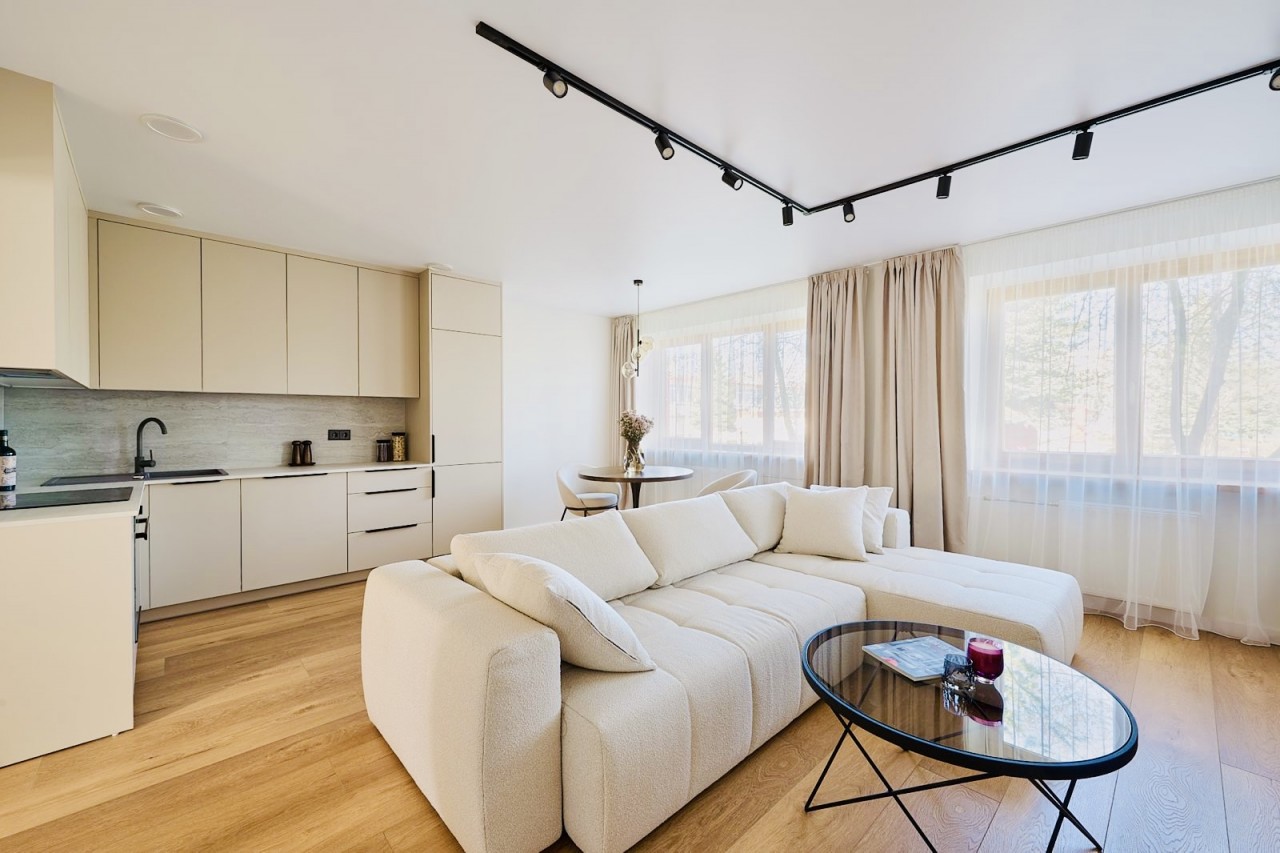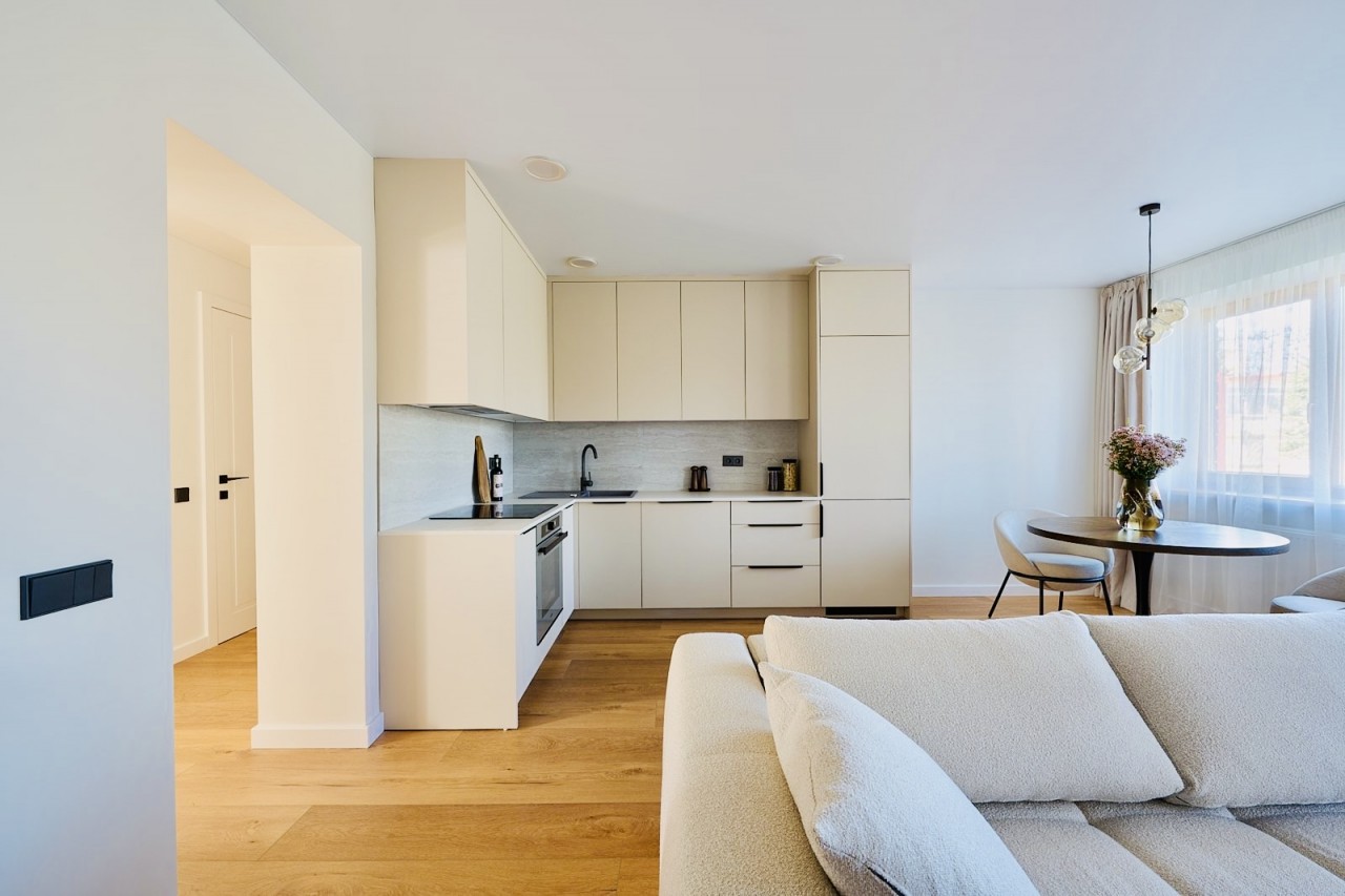 Butas pasižymi itin erdvia, beveik 30 m² svetainės ir virtuvės zona, kuri sukuria lengvumo bei erdvės pojūtį. Tai puiki vieta tiek ramiems vakarams namuose, tiek jaukiems susitikimams su šeima ar draugais.